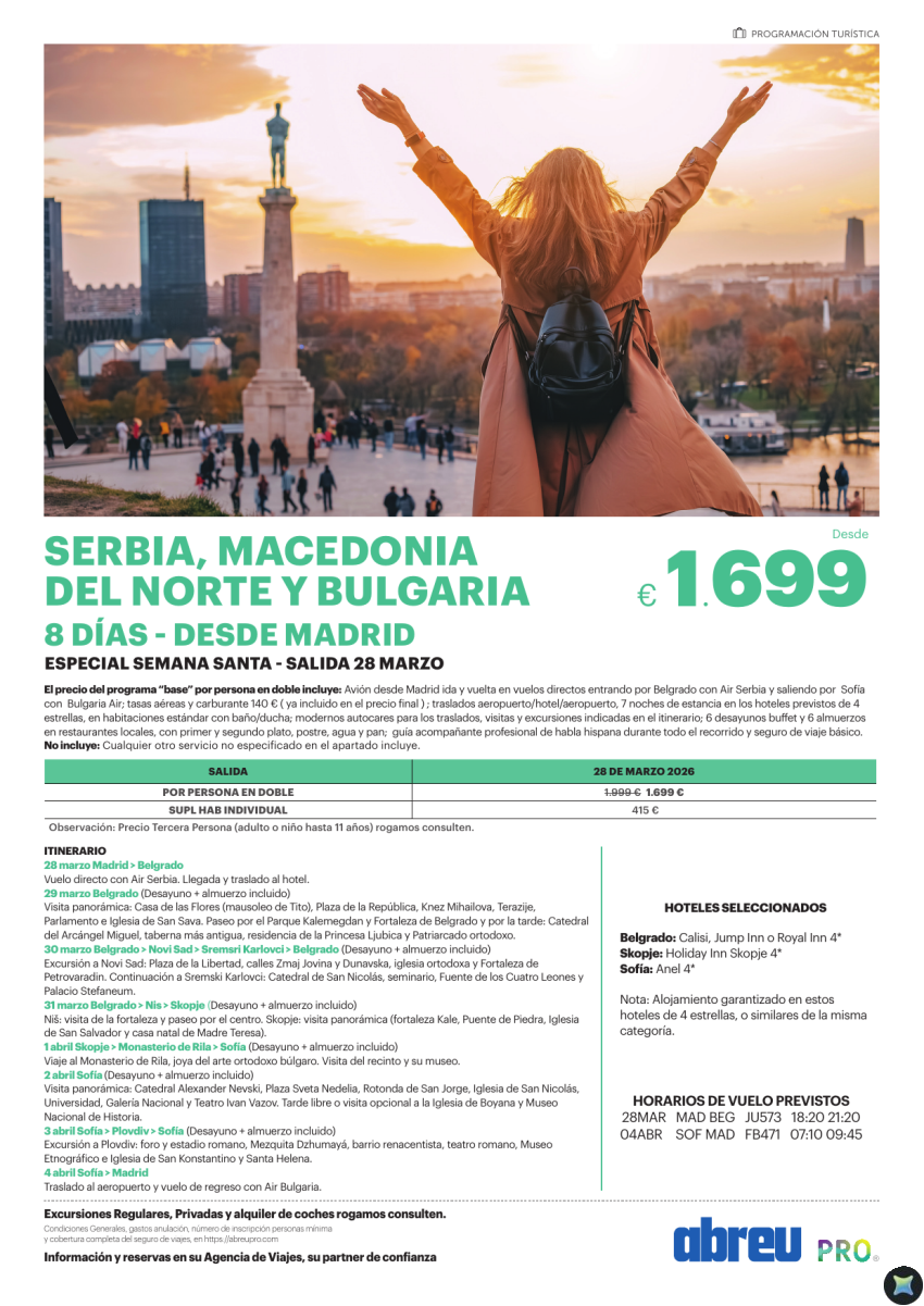 Serbia, Macedonia del Norte y Bulgaria S Santa 8 dias desde Madrid descuento 300 €