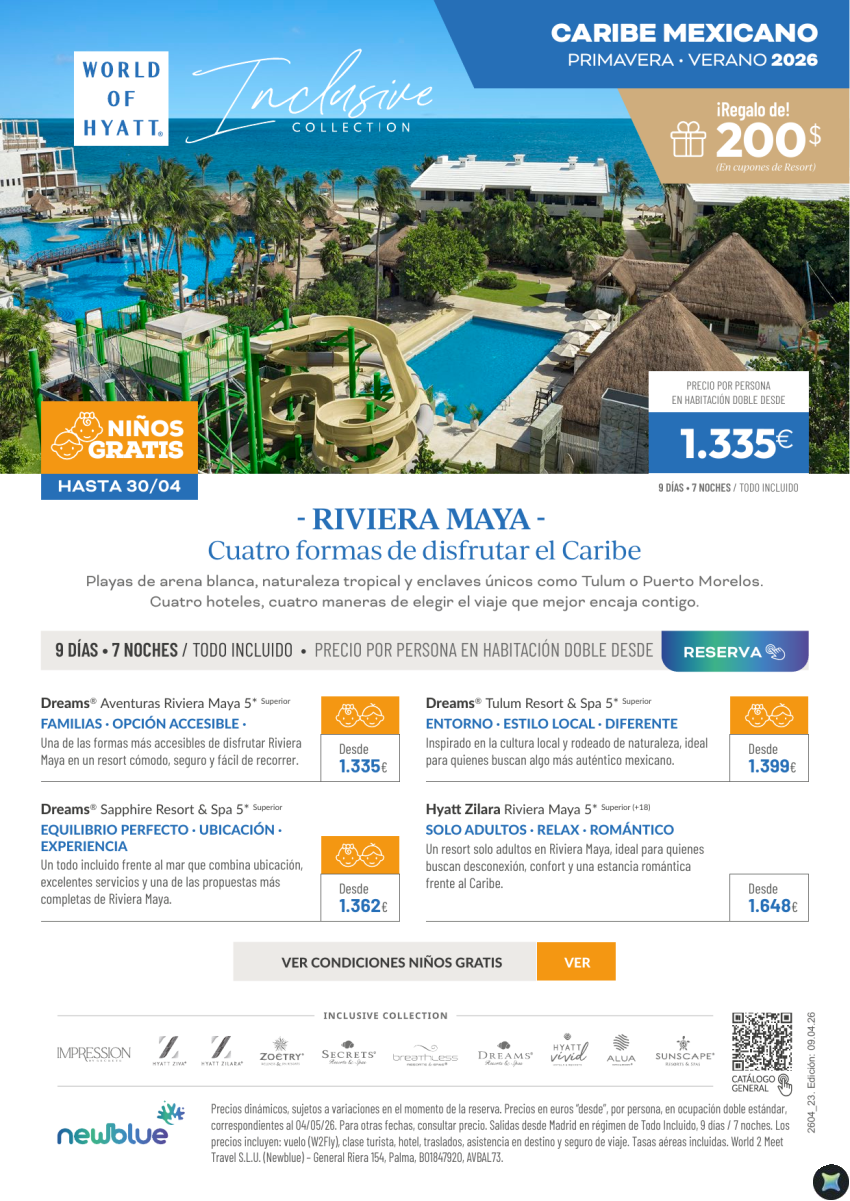 Niños Gratis Riviera Maya Salidas primeravera-verano. Desde 1.335€ 9D/7N Todo Incluido